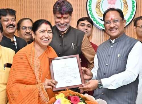 मुख्यमंत्री विष्णु देव साय से नवनिर्वाचित राज्यसभा सदस्य श्रीमती लक्ष्मी वर्मा ने की सौजन्य मुलाकात