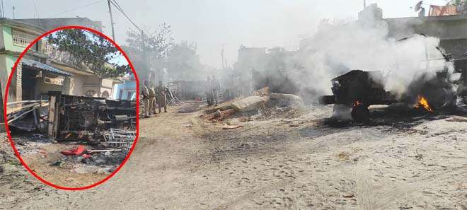 जानकारी के अनुसार इस आगजनी की घटना में एक ट्रैक्टर, एक पिकअप वाहन और तीन मोटरसाइकिल पूरी तरह जलकर खाक हो गए। घटना के बाद गांव में तनाव का माहौल बन गया और लोगों में दहशत फैल गई।