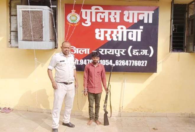 जिसे मौके पर जाकर पूछताछ किया किसी प्रकार का वैध दस्तावेज (लायसेंस) नहीं होना बताने पर त्वरित कार्यवाही करते हुए धारा 25, 27 आर्म्स एक्ट के तहत अपराध कायम कर अरोपी अजय पारधी पिता हेमलाल पारधी उम्र 25 साल पता ग्राम भूमिया थाना तिल्दा नेवरा जिला रायपुर छ.ग. को गिरफ्तार कर न्यायिक रिमाण्ड में भेजा गया।