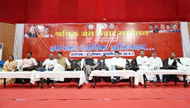 रायपुर : श्रम कल्याण मंडल के अध्यक्ष श्री योगेश दत्त मिश्रा की अध्यक्षता में ऑडिटोरियम जांजगीर में आज श्रमिक जन संवाद/श्रमिक सम्मेलन का आयोजन किया गया। कार्यक्रम में श्रमिकों को शासन की विभिन्न जनकल्याणकारी योजनाओं की विस्तृत जानकारी दी गई। इसके साथ ही पात्र हितग्राहियो को विभिन्न योजनाओं के तहत कुल 1 करोड़ 37 लाख 2 हजार 294 रुपये की राशि वितरित की गई।