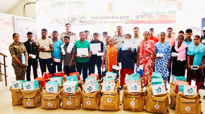 जिला प्रशासन द्वारा आयोजित इस कार्यक्रम में 75 आत्मसमर्पित नक्सलियों को अत्याधुनिक 5G स्मार्टफोन तथा 25 युवाओं को रोजगारोन्मुख मेसन (राजमिस्त्री) किट प्रदान की गई। इस पहल को कलेक्टर श्री देवेश कुमार ध्रुव एवं पुलिस अधीक्षक श्री किरण चव्हाण के सतत मार्गदर्शन में सफलतापूर्वक संपन्न किया जा रहा है।