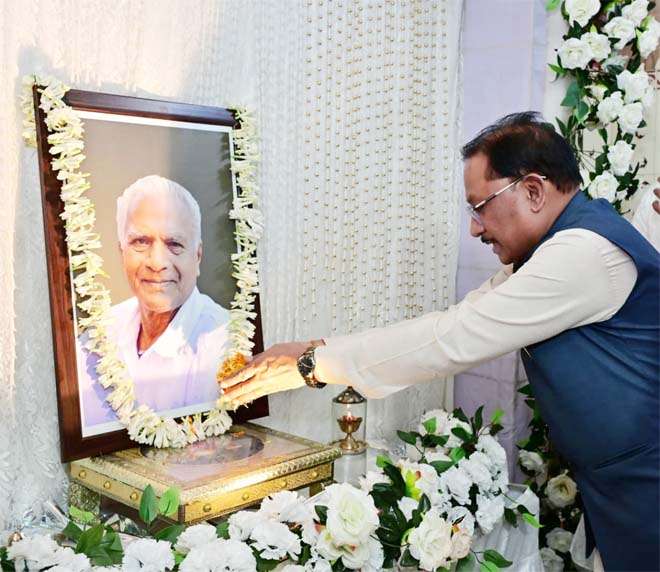 रायपुर : मुख्यमंत्री श्री विष्णु देव साय ने आज जशपुरनगर के वरिष्ठ सामाजिक कार्यकर्ता एवं लोकतंत्र सेनानी स्वर्गीय श्री महावीर प्रसाद जैन के निवास पहुंचकर उनके छायाचित्र पर पुष्प अर्पित कर श्रद्धांजलि दी।
