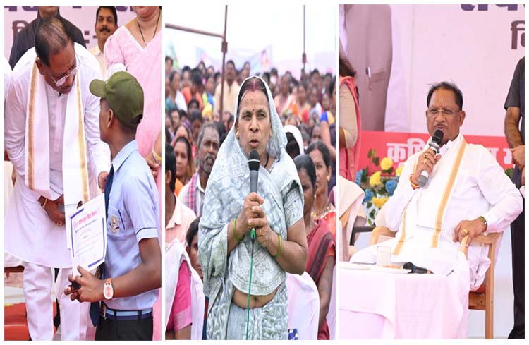 सुशासन तिहार के तृतीय चरण अंतर्गत आज समाधान शिविर में क्षेत्र की 08 ग्राम पंचायतों सीतागांव, मदनवाडा, कारेकट्टा, हलांजुर, हुरेली, कंदाडी, कोहका, हलोरा ग्राम पंचायत को क्लस्टर के रूप में शामिल किया गया था। मुख्यमंत्री ने क्लस्टर के 08 ग्राम पंचायतों के हितग्राहियों से सीधा संवाद कर शासन की योजनाओं की जानकारी ली और उनकी समस्याएं सुनीं। मुख्यमंत्री श्री साय ने अपने संबोधन में कहा कि अभी पूरे प्रदेश में सुशासन तिहार 2025 मनाया जा रहा है। हमारी सरकार को कार्यभार संभाले 1.5 वर्ष हुआ है, इस दौरान हमने निरंतर जनता के बीच पहुंचकर योजनाओं का प्रभाव और लाभ का आकलन किया है। इस सुशासन तिहार में अब तक 40 लाख से अधिक आवेदन प्राप्त हुई हैं, जिनका निराकरण अधिकारियों द्वारा दूसरे चरण में 20 दिनों तक किया गया। वर्तमान में समाधान शिविरों के तीसरे चरण का आयोजन किया जा रहा है।