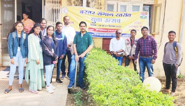 दंतेवाड़ा| खेल एवं युवा कल्याण विभाग, छत्तीसगढ़ शासन द्वारा बस्तर संभाग स्तरीय युवा महोत्सव 2022 का रंगारंग कार्यक्रम बस्तर जिला के मुख्यालय जगदलपुर में कुम्हरावंड स्थित शहीद गुण्डाधूर कृषि महाविद्यालय परिसर सभागार में आयोजित किया गया। इसमें बस्तर संभाग के बस्तर, दंतेवाड़ा, सुकमा, बीजापुर, नारायणपुर, कांकेर एवं कोंडागांव जिलों से कुल 2000 प्रतिभागी एवं अधिकारियों ने हिस्सा लिया। जिला दंतेवाड़ा के महिला एवं पुरुष प्रतिभागी तथा प्रभारी अधिकारियों ने संभाग स्तरीय युवा उत्सव में शामिल हुए। विभिन्न खेल, बौद्धिक एवं सांस्कृतिक प्रतियोगिताओं में दंतेवाड़ा जिला ने कुल 15 पुरस्कार प्राप्त किया।
