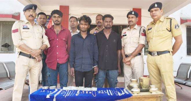 चोर गिरोह का पर्दाफ़ाश : पुलिस ने 24 घंटे मे किया खुलासा, 3 आरोपियों से सोना-चांदी के जेवर, बर्तन और नगदी बरामद