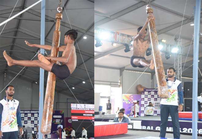 रायपुर : खेलो इंडिया ट्राइबल गेम्स 2026 के अंतर्गत सरगुजा जिले के गांधी स्टेडियम अंबिकापुर में पारंपरिक भारतीय खेल मल्लखंभ का भव्य शुभारंभ किया गया। इस अवसर पर खिलाड़ियों ने अपने अद्भुत संतुलन, शक्ति एवं लचीलापन का शानदार प्रदर्शन कर दर्शकों को मंत्रमुग्ध कर दिया।