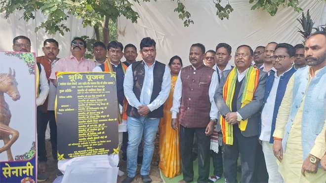 समारोह को संबोधित करते हुए अनुसूचित जनजाति आयोग के अध्यक्ष श्री रूप सिंह मंडावी ने कहा कि जनजातीय गौरव दिवस हमारे नायकों को स्मरण करने और उनके आदर्शों को आत्मसात करने का दिन है। छत्तीसगढ़ में आदिवासी समाज एक अलग ही पहचान रखता है। उन्होंने समाज के क्रमिक विकास और विस्तार के संदर्भ में जानकारी दी। समाज के पदाधिकारी एवं जिला पंचायत उपाध्यक्ष श्री भीखम सिंह ठाकुर ने कहा कि शहीद वीर नारायण सिंह ने अन्याय के खिलाफ आवाज उठाकर समाज को दिशा दी। उनकी शहादत हमें सिखाती है कि अधिकारों की रक्षा के लिए संगठित होकर संघर्ष करना आवश्यक है। समाज के वरिष्ठ पदाधिकारी श्री कमलेश ध्रुव एवं आर एन ध्रुव ने भी संबोधित किया। उन्होंने भगवान बिरसा मुंडा और शहीद वीर नारायण सिंह के शहादत पर अपने प्रेरक विचार रखे। इन्होंने कहा कि दोनों वीर अंग्रेजी हुकूमत और प्रतिकूल परिस्थिति के खिलाफ उठ खड़े हुए।कार्यक्रम के दौरान विधिवत पूजा-अर्चना के साथ भूमिपूजन सम्पन्न किया गया। इस अवसर पर समाज के पदाधिकारी, जनप्रतिनिधि, परिक्षेत्र एवं बड़ी संख्या में समाज जन उपस्थित रहे। कार्यक्रम का समापन राष्ट्रभक्ति और सामाजिक एकता के संदेश के साथ हुआ।