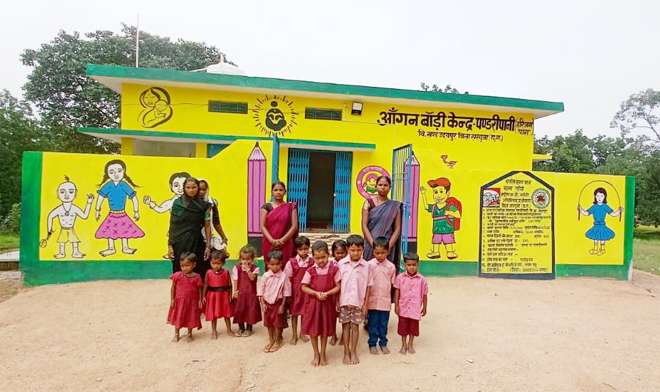 आंगनबाड़ी भवन बच्चों के लिए आकर्षण का केंद्र