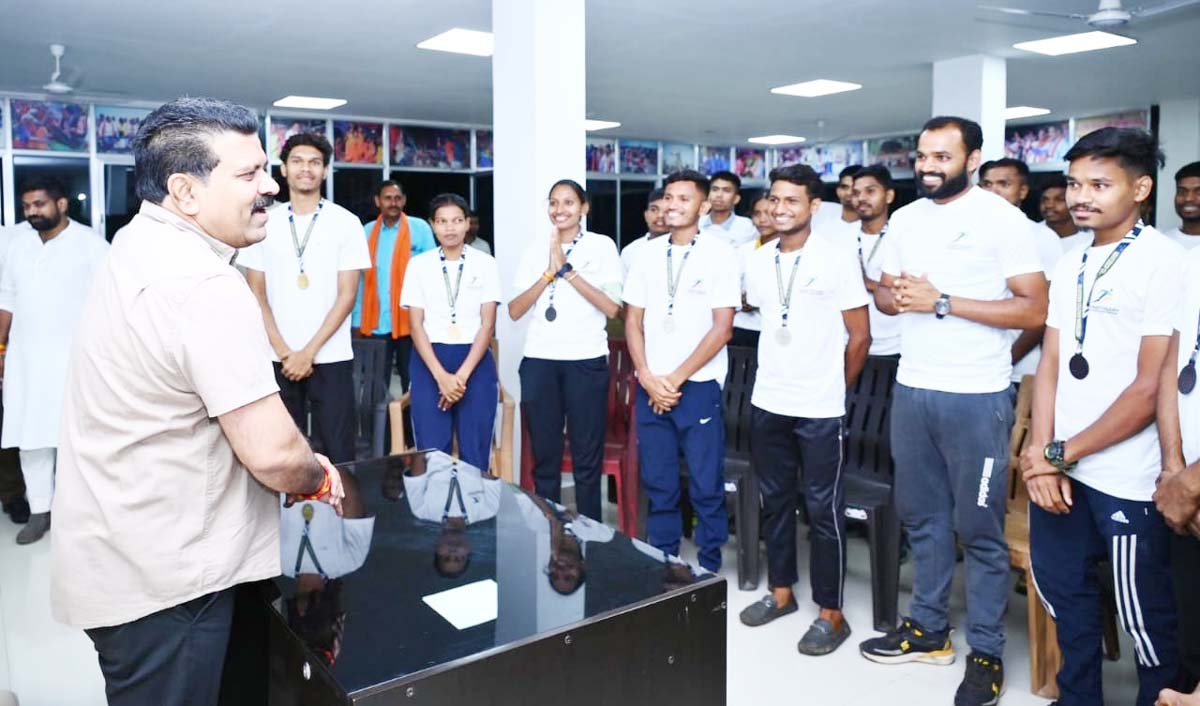 रायपुर : 21वीं सीनियर राज्य स्तरीय एथलेटिक्स प्रतियोगिता 2025 में शानदार प्रदर्शन करते हुए कबीरधाम जिले के खिलाड़ियों ने कुल 14 पदक अर्जित किए हैं। इनमें 02 स्वर्ण, 04 रजत एवं 08 कांस्य पदक शामिल हैं। इस उत्कृष्ट उपलब्धि पर कबीरधाम जिले के विजेता खिलाड़ियों ने उपमुख्यमंत्री श्री विजय शर्मा से सौजन्य मुलाकात की। उपमुख्यमंत्री श्री शर्मा ने सभी खिलाड़ियों को बधाई एवं शुभकामनाएं देते हुए कहा कि कबीरधाम जिले की यह उपलब्धि न केवल जिले के लिए गौरव की बात है, बल्कि इससे प्रदेश का भी मान बढ़ा है। उन्होंने कहा कि राज्य सरकार खेल और खिलाड़ियों को प्रोत्साहन देने के लिए संकल्पित है और भविष्य में भी सभी आवश्यक संसाधन, प्रशिक्षण व सुविधाएँ प्रदान की जाएंगी ताकि राज्य के युवा राष्ट्रीय एवं अंतरराष्ट्रीय स्तर पर अपनी पहचान बना सकें।