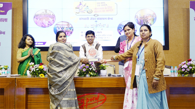 राज्य स्तरीय ‘नई चेतना 4.0’ जेंडर अभियान कार्यशाला का आयोजन सर्किट हाउस, सिविल लाइन्स, रायपुर में किया गया, जहां रायगढ़ जिले को जेंडर अभियान की प्रबंधन सूचना प्रणाली (एमआईएस) का पूर्ण क्रियान्वयन करते हुए राज्य में सर्वाधिक प्रविष्टि दर्ज करने के लिए सम्मानित किया गया। यह सम्मान जिले द्वारा समयबद्ध, सटीक और पारदर्शी सूचना प्रविष्टि के साथ-साथ जेंडर संवेदनशील कार्यों को प्राथमिकता देने के लिए प्रदान किया गया। जिले की ओर से यह सम्मान एनआरएलएम के जिला कार्यक्रम प्रबंधक श्री अविक बासु, जेंडर मास्टर ट्रेनर श्रीमती मेनका सिदार एवं एफएनएचडब्ल्यू मास्टर ट्रेनर श्रीमती गीतमला दीदी ने सर्किट हाउस, सिविल लाइन्स, रायपुर में उपस्थित होकर ग्रहण किया।