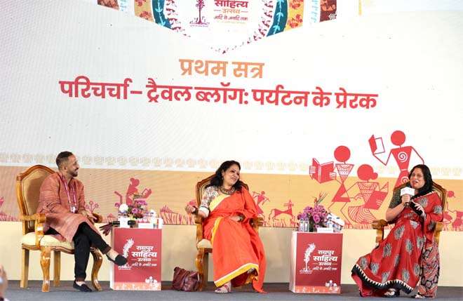 रायपुर : रायपुर साहित्य उत्सव के तीसरे और समापन दिवस पर लाल जगदलपुरी मंडप में प्रथम सत्र के रूप में “ट्रैवल ब्लॉग: पर्यटन के प्रेरक” विषय पर एक विचारोत्तेजक पैनल चर्चा का आयोजन किया गया। इस सत्र में प्रसिद्ध यात्रा पत्रकार, ब्लॉगर एवं एकल यात्री सुश्री कैनात काज़ी तथा “देसी चश्मे से लंदन डायरी” की लेखिका सुश्री शिखा वर्शनी ने अपने अनुभव साझा किए। सत्र का संचालन श्री राहुल चौधरी ने किया।