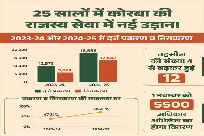 यह 25 वर्षों की कहानी है  बदलते कोरबा की, जहाँ शासन की पहुँच जनता तक, और जनता की आवाज शासन तक पहुँची है। राजस्व प्रशासन के इस सुदृढ़ीकरण ने कोरबा जिले को विकास और सुशासन की नई पहचान दी है। यह आमनागरिको के लिए बहुत सहूलियत साबित हो रही है।
