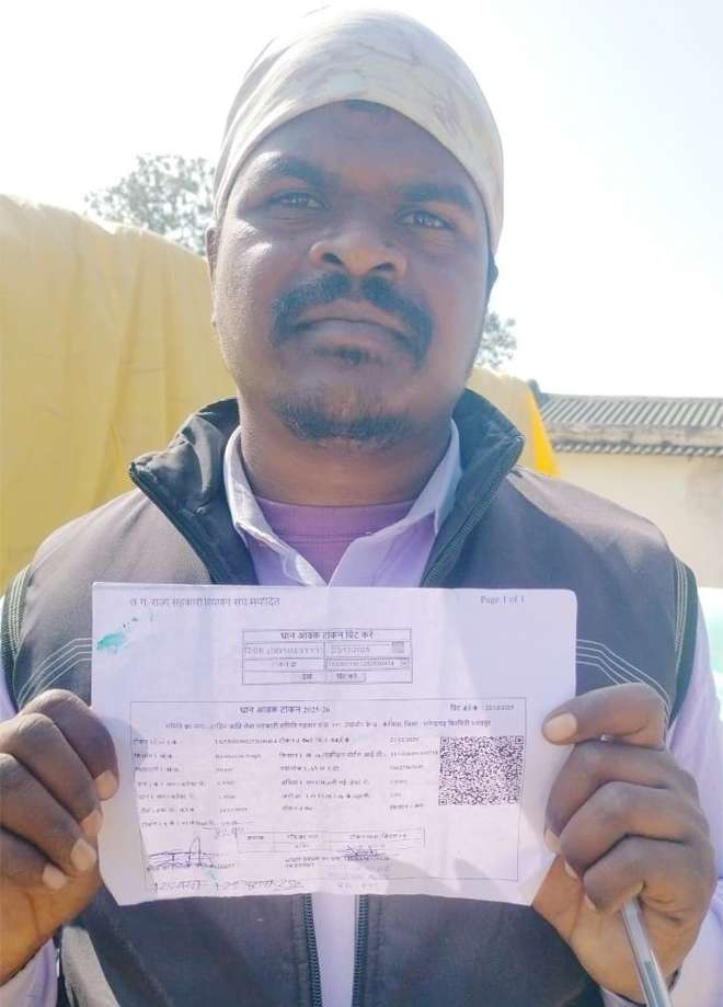 खरीफ विपणन वर्ष 2025-26 में रामकरण सिंह द्वारा कुल 100 क्विंटल धान का सफलतापूर्वक विक्रय किया गया। पूरी प्रक्रिया समयबद्ध, व्यवस्थित और बिना किसी रुकावट के संपन्न हुई। अपने पसीने की कमाई को पारदर्शी और सम्मानजनक तरीके से बिकते देखकर उनके चेहरे पर संतोष, गर्व और आत्मविश्वास स्पष्ट रूप से दिखाई दिया, जो इस बदली हुई व्यवस्था की सफलता का जीवंत प्रमाण है।