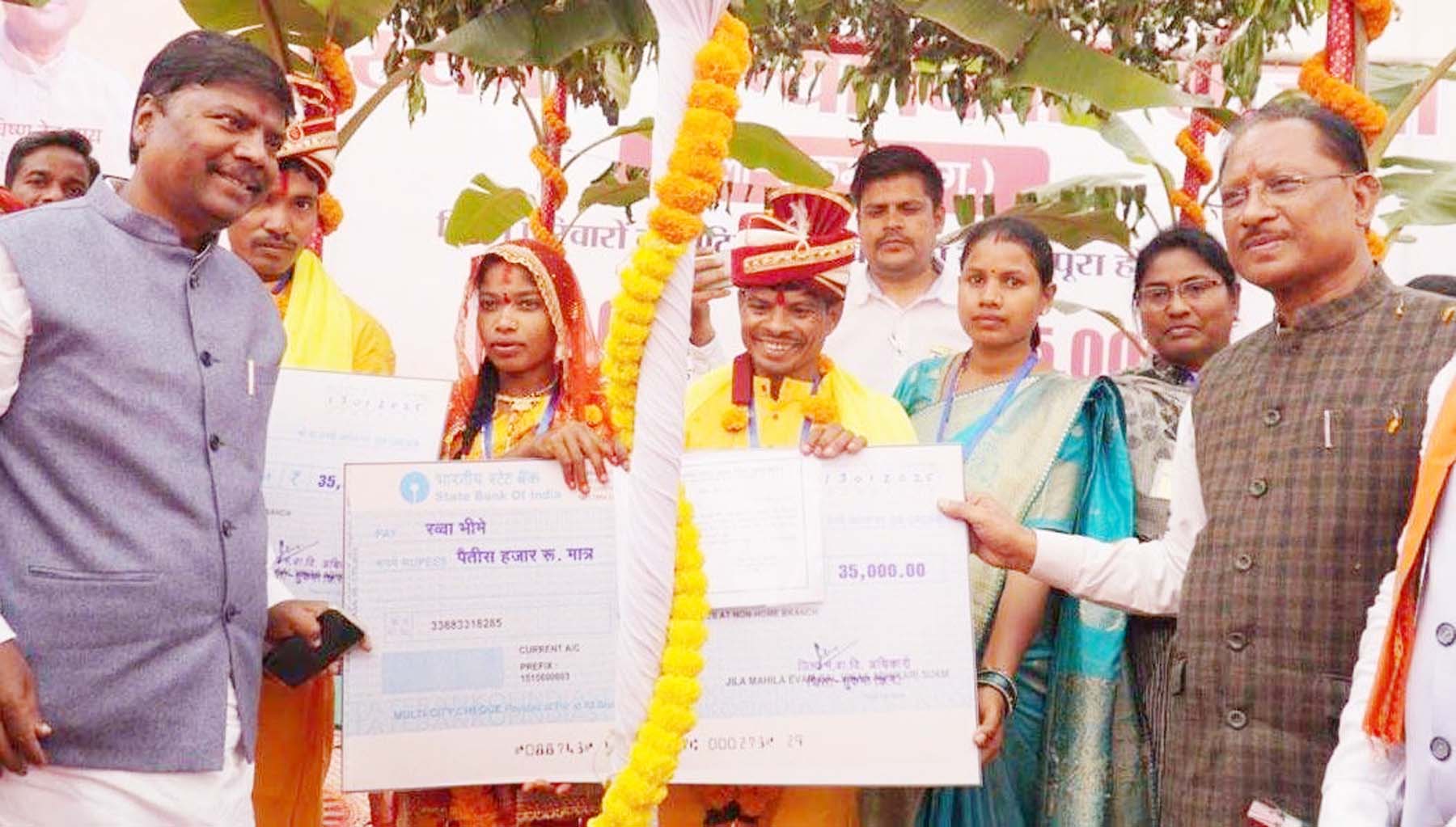 महिला एवं बाल विकास मंत्री श्रीमती लक्ष्मी राजवाड़े के मार्गदर्शन में मुख्यमंत्री कन्या विवाह योजना ने बस्तर के निर्धन परिवारों को नया जीवन दिया है। योजना के तहत प्रत्येक जोड़े को 50 हजार रुपये की सहायता दी जाती है, जिसमें 35 हजार रुपये सीधे वधु के खाते में हस्तांतरित होते हैं। श्री विष्णु देव साय सरकार के कार्यकाल में अब तक 15 हजार से अधिक जोड़ों का विवाह इस योजना के तहत संपन्न हो चुका है।